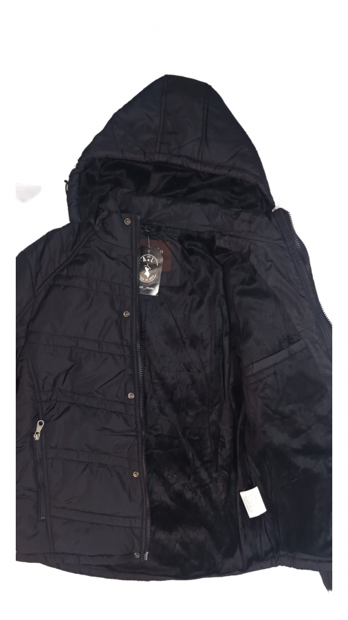 Campera con cierre y botones frontales, bolsillos con cierre, bolsillo interno y capucha desmontable. Ideal para el frío con estilo y funcionalidad.
