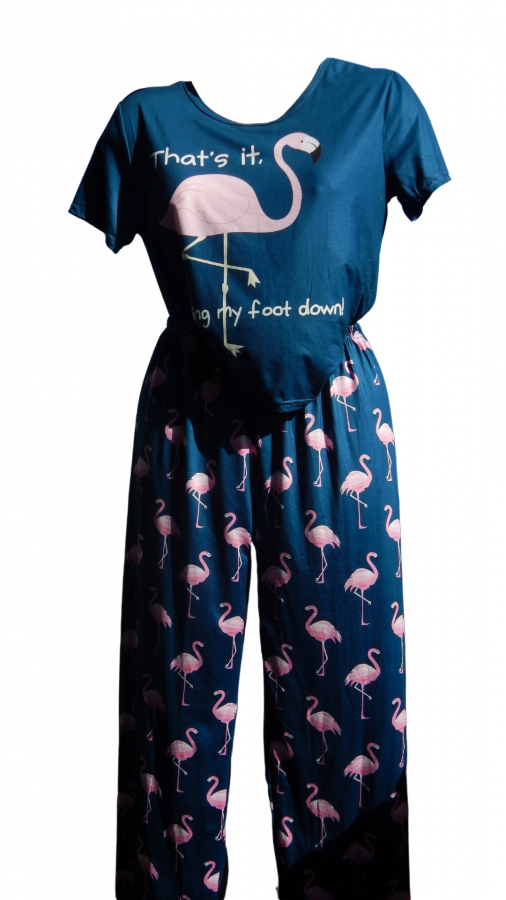 Hora de descansar con mucho estilo tropical! Este encantador pijama de flamencos es perfecto para las noches de relax. El conjunto incluye un pantalón largo de tela suave y fresca, con un alegre estampado de flamencos en tonos vibrantes, y una remerita liviana, ideal para las noches cálidas. Cómodo, moderno y con un diseño que transmite buena vibra, este pijama es perfecto para quienes aman sentirse lindas incluso a la hora de dormir.