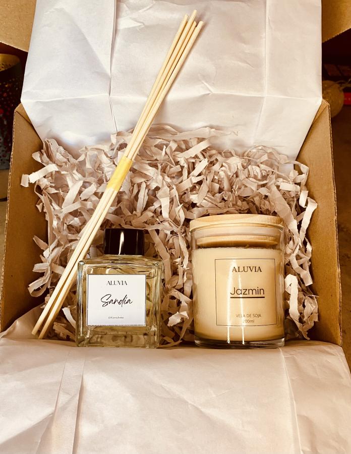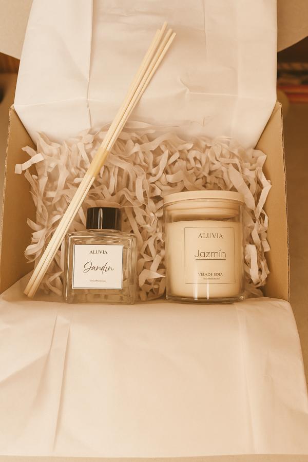 Ambos productos están creados artesanalmente con fragancias exclusivas de Aluvia, ofreciendo una experiencia sensorial cálida, elegante y duradera.