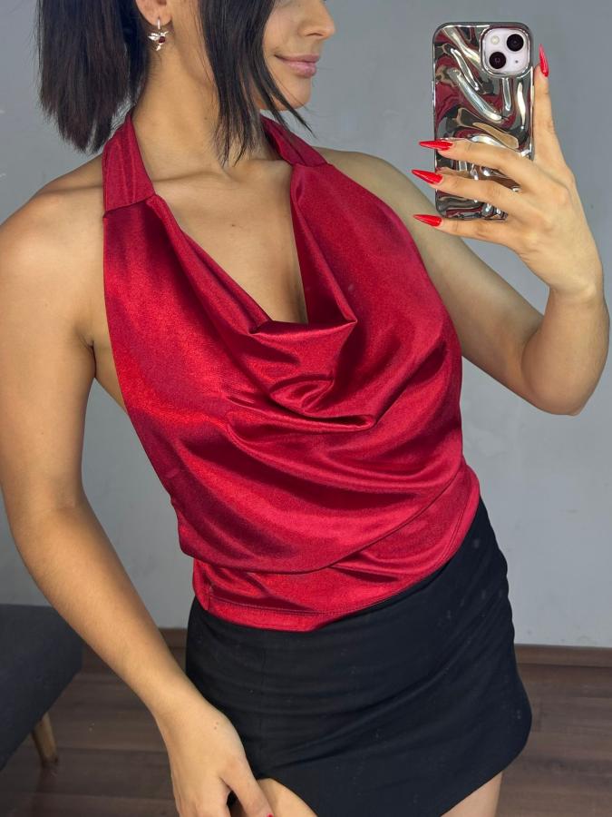 Un básico ultra glam que levanta cualquier look en segundos. Este top de tela satinada tiene un escote drapeado súper favorecedor que cae divino, aportando ese toque elegante y sexy sin esfuerzo