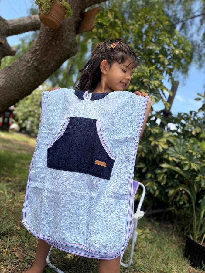 Apenas salen del agua, el poncho los envuelve, absorbe la humedad y les devuelve el calorcito al instante. Nada de niños temblando… ¡problema resuelto!