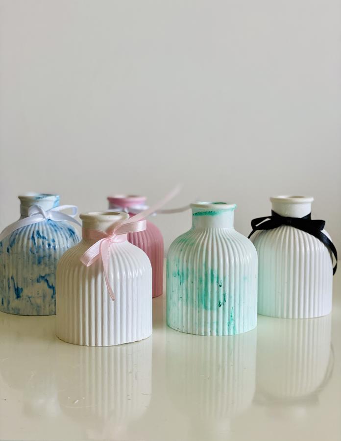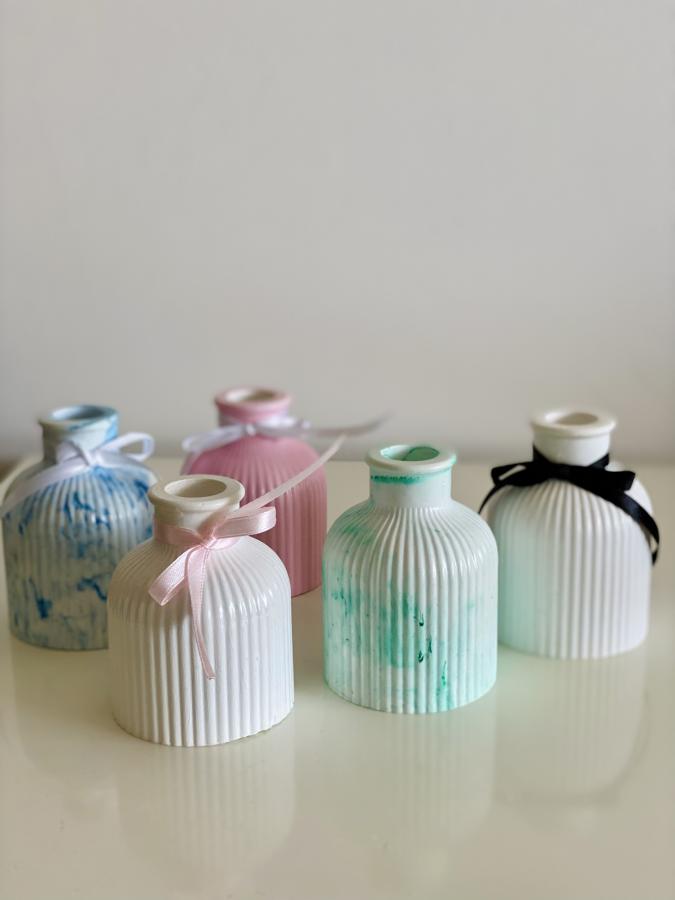 Florero Vibrante Nuevo Comienzo. Estallido de energía positiva con acabado de color dinámico. Ideal para decorar cualquier ambiente. Material: Yeso y cemento. Medidas: Alto 9 cm x Diámetro 6.8 cm. (No apto para agua). Sellada y Barnizada.