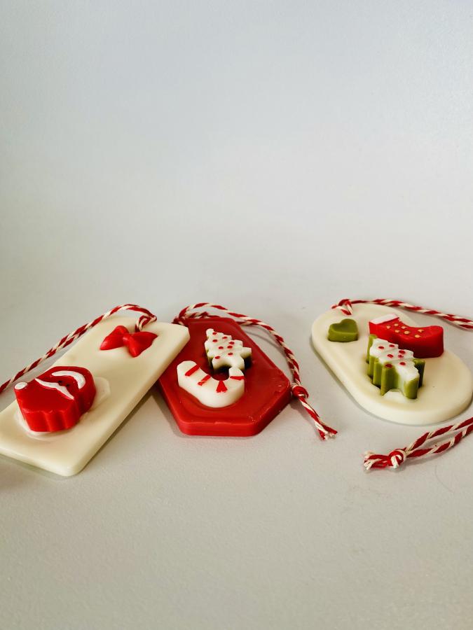 Perfuma tu ambiente de forma natural dando una atmósfera navideña de una manera diferente a la tradicional vela. No se enciende. Material: Cera de soja. Medidas: Alto 9.5 cm x Ancho 5.5 cm x 0.5 Profundidad.