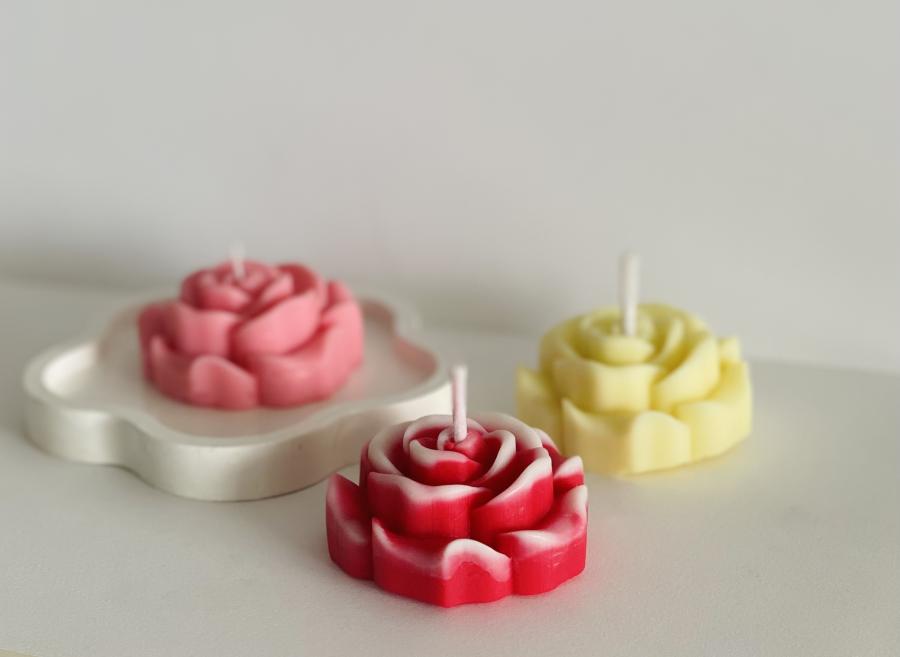 Vela Rosa Romántica. Un clásico. Ideal para regalar y crear un ambiente íntimo y elegante. Material: Cera de soja. Medidas: Diámetro 6 cm x Alto 2.5 cm