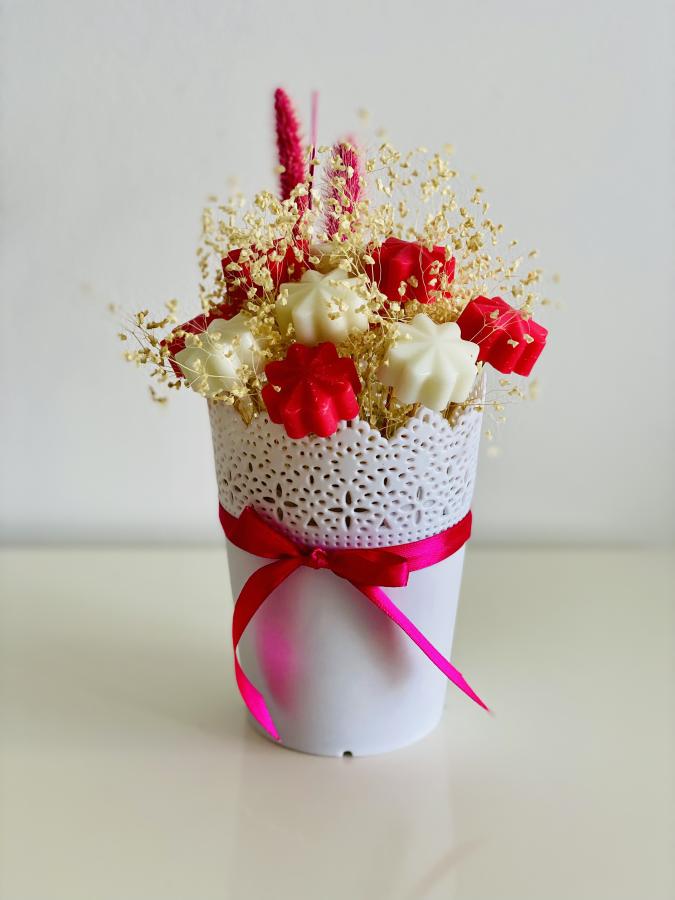 Bouquet Rosas Wax Melt. Piezas de cera de soja con forma de flores para derretir en quemador. Perfuma tu ambiente con la esencia floral más intensa. Material: Cera de soja. Medidas: Alto 18cm x Diametro 11cm. Aprox entre 10-14 unidades/set.