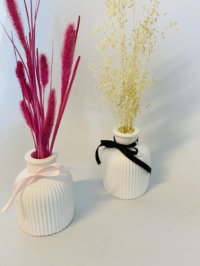 Florero Vibrante Nuevo Comienzo. Estallido de energía positiva con acabado de color dinámico. Ideal para decorar cualquier ambiente. Material: Yeso y cemento. Medidas: Alto 9 cm x Diámetro 6.8 cm. (No apto para agua). Sellada y Barnizada.