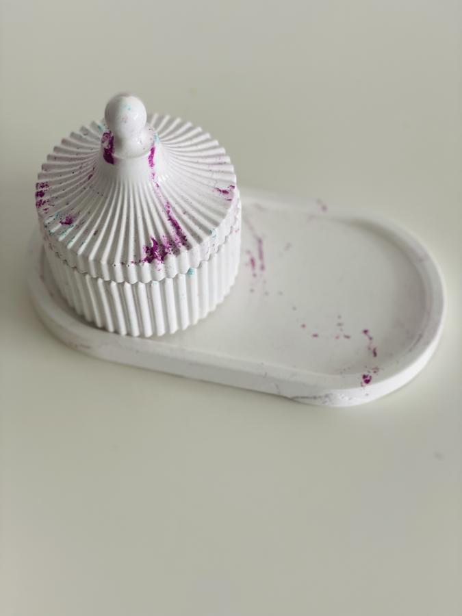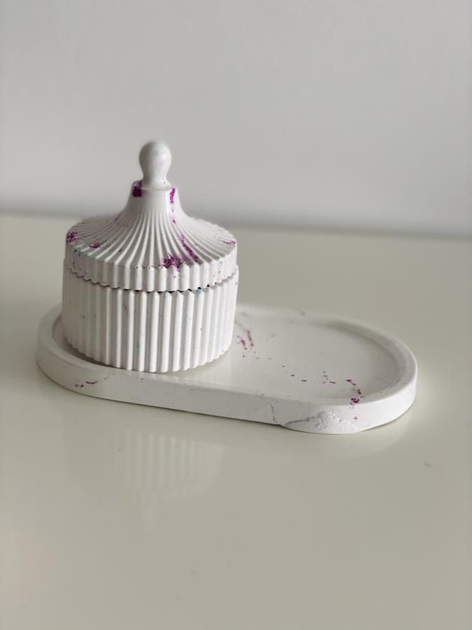 Bandeja ovalada y Circus. El lienzo perfecto para que crees tu propia composición. Material: Yeso y Cemento. Medidas: Bandeja 18 cm.