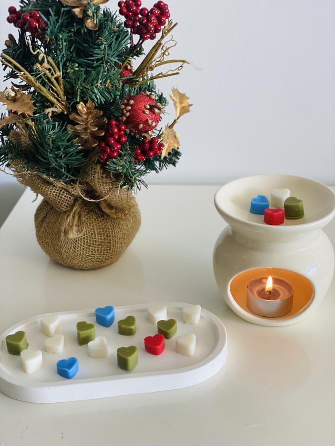 Waxmelt con forma de corazones en cera de soya. Ideal para quienes disfrutan de la fragancia romántica. Material: Cera de soja. Medidas: Bolsa 60g.