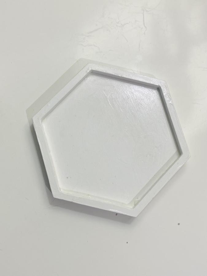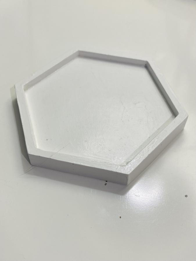 Base geométrica hexagonal moderna con borde definido. Medidas: 11.5 cm de diámetro x 1.3 Profundidad. Material: Yeso/Cemento. Una pieza de diseño única que aporta estructura y elegancia a cualquier superficie de tu hogar 🕯️