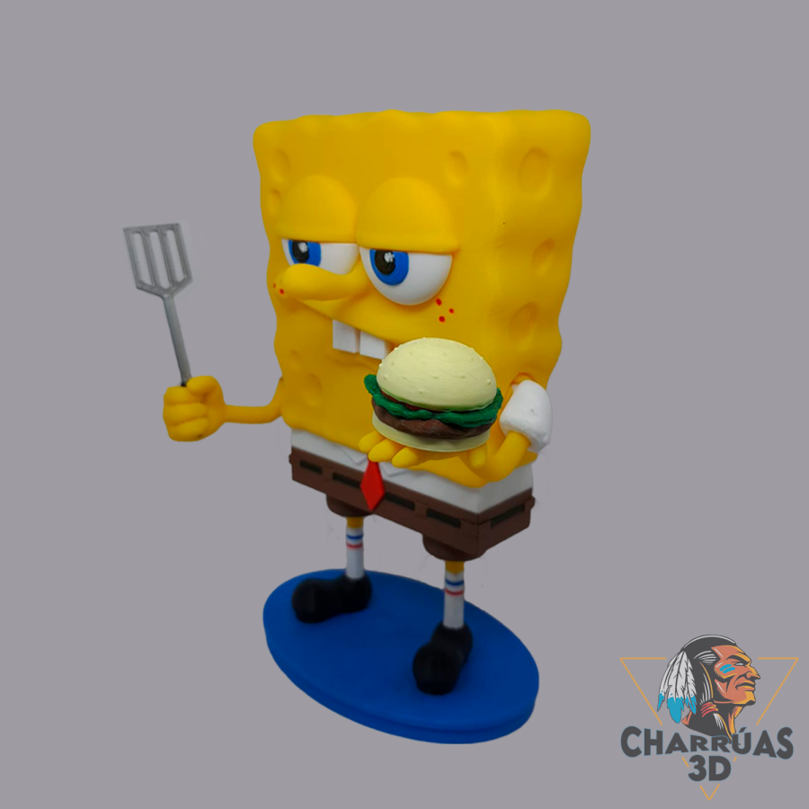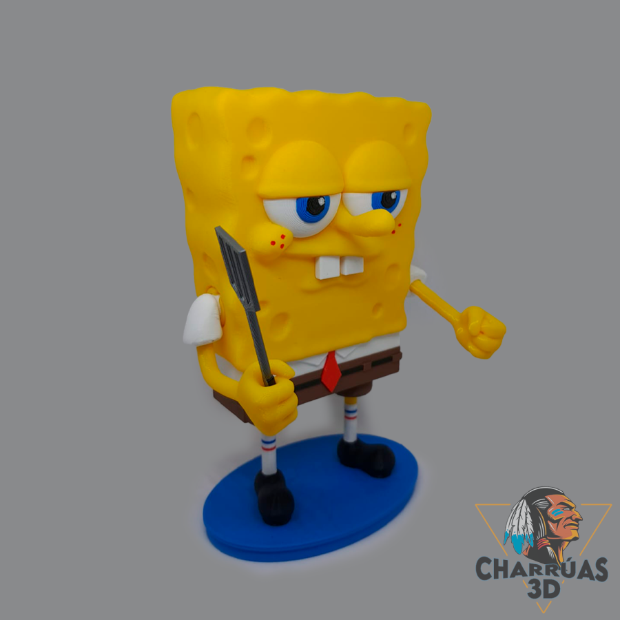 La figura semi-articulada de Bob Esponja es una pieza impresa en 3D, diseñada con una explosión de colores y un estilo llamativo, ideal para fans, coleccionistas y amantes del mundo 3D.