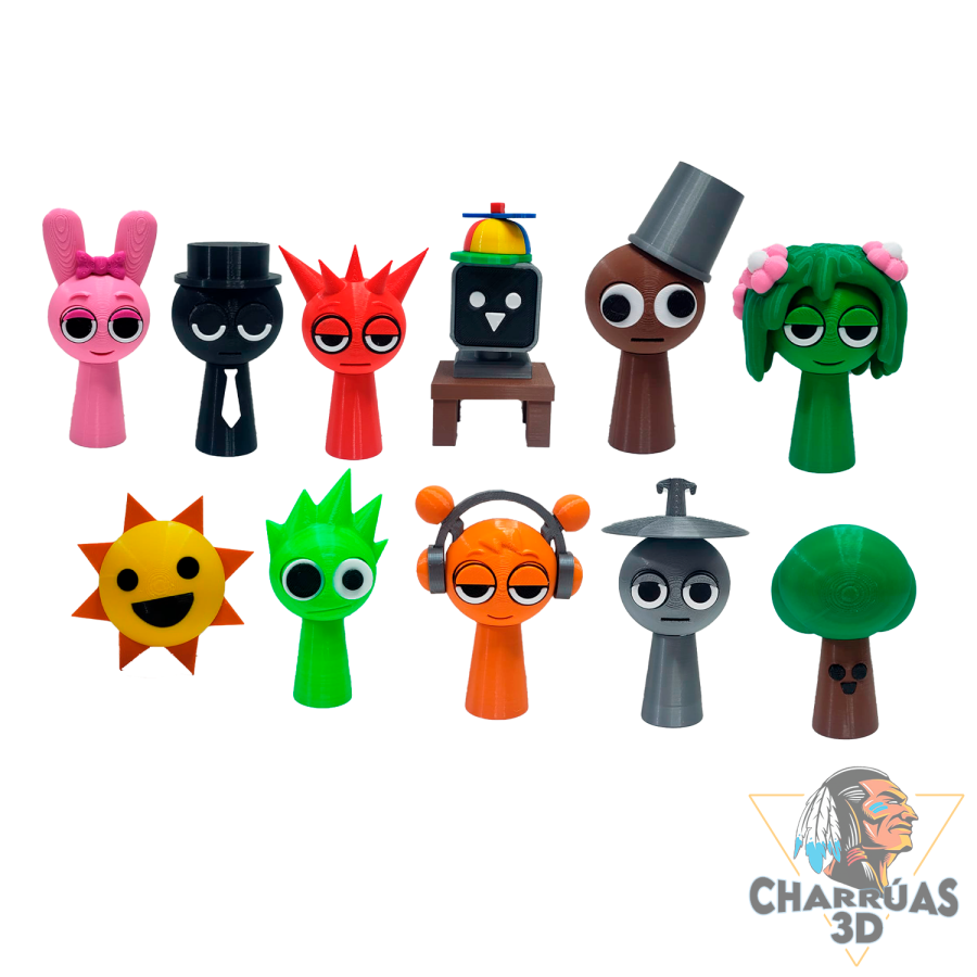 La figura de Sprunki inspirada en Incredibox es una pieza coleccionable impresa en 3D, con un diseño llamativo y reconocible, ideal para fans del universo musical y visual del juego.