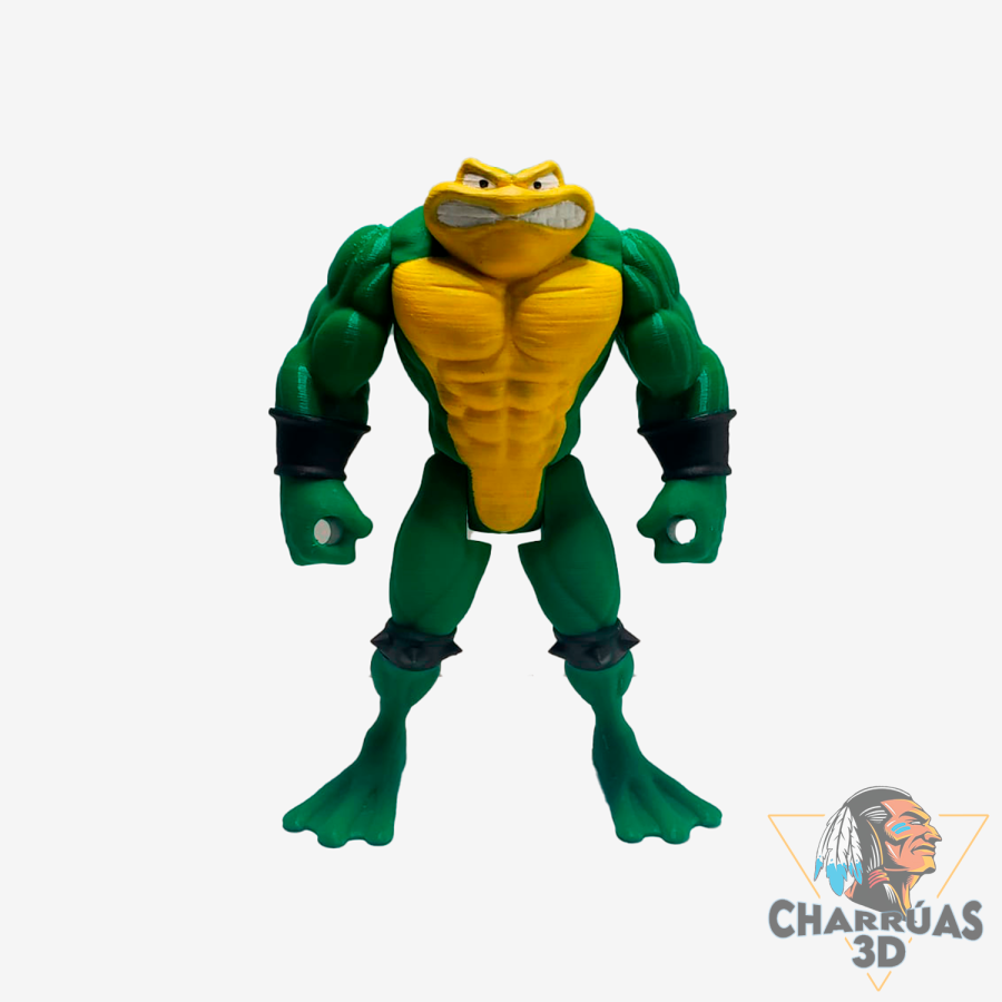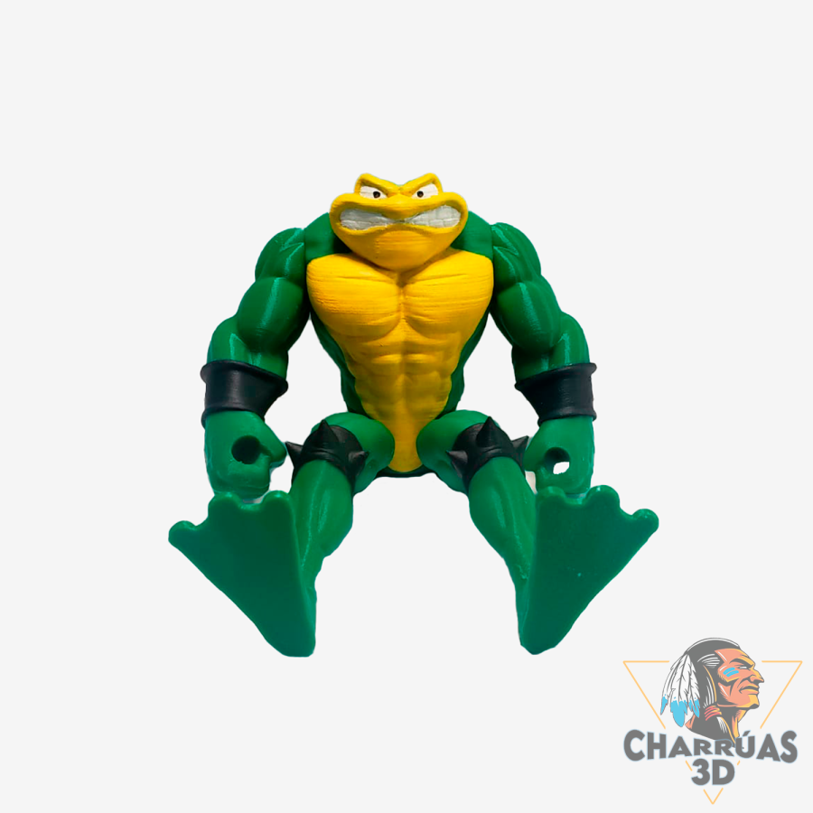 La figura de Battletoads es una pieza articulada impresa en 3D y pintada a mano, inspirada en el icónico videojuego retro y pensada para coleccionistas y fanáticos del gaming clásico.