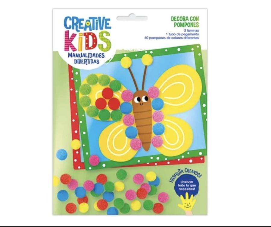 Este kit invita a niños y niñas a decorar una linda mariposa usando pompones de colores, estimulando la creatividad, la motricidad fina y la concentración. |