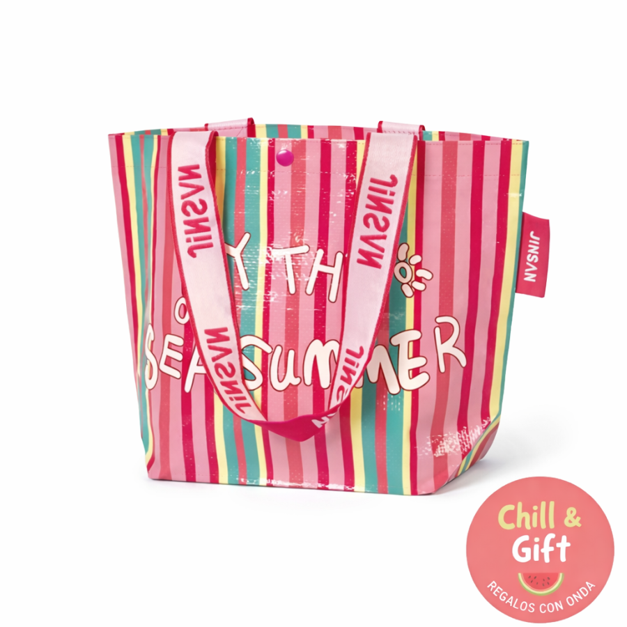 Confeccionada en material resistente y liviano, presenta un diseño a rayas es plegable, fácil de guardar y perfecta para llevar siempre en la cartera, mochila o bolso, lista para usar en compras rápidas, mandados o salidas imprevistas.