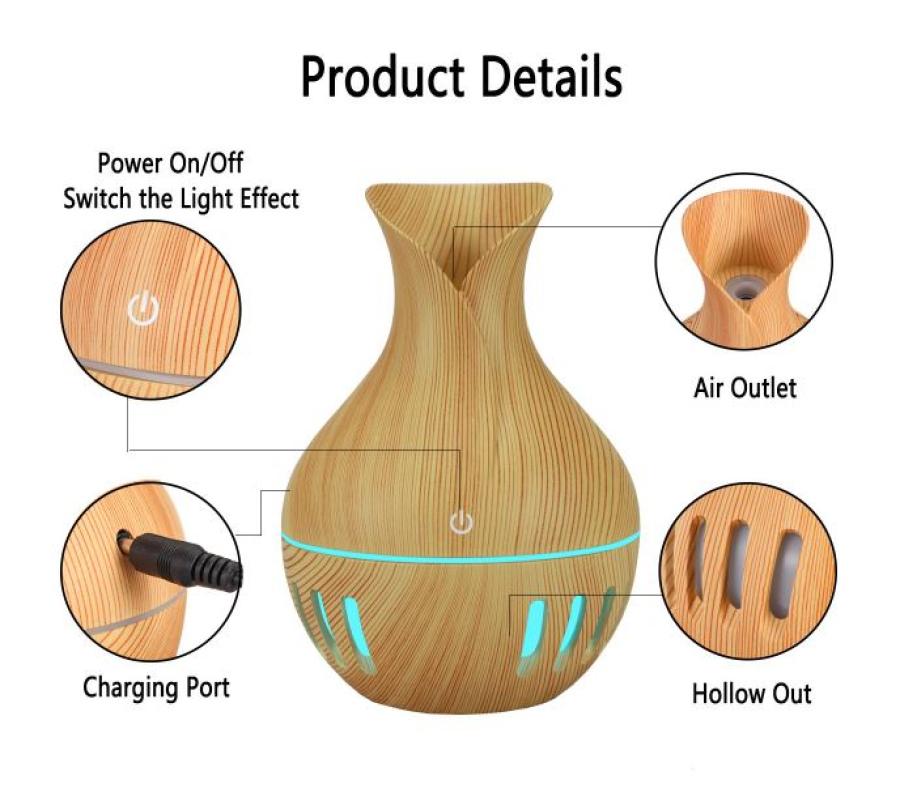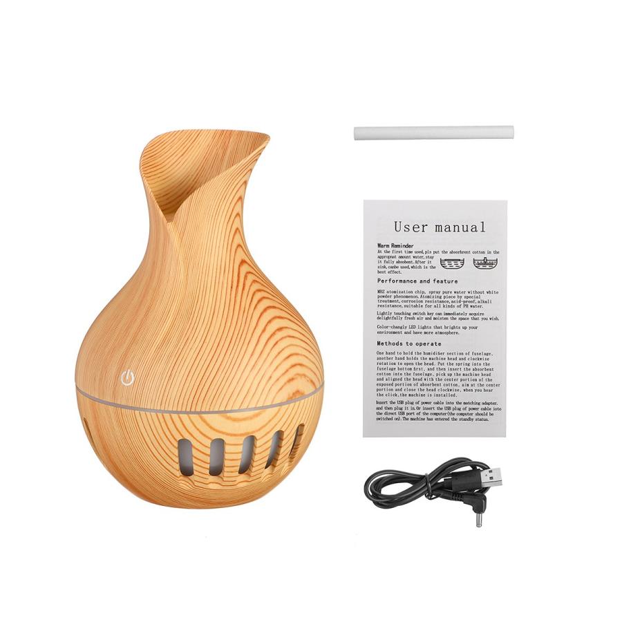 Diseño elegante: Con una forma de calabaza y un acabado clásico en grano de madera, este difusor se destaca por su estilo decorativo y moderno.