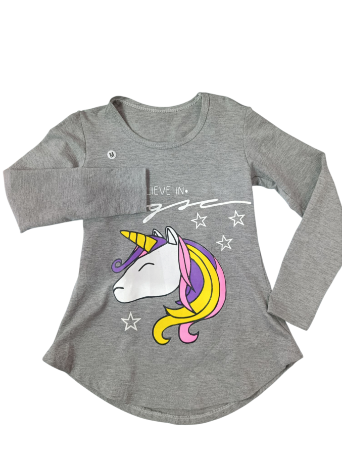 Remera en algodón de manga larga para niña con estampa de unicornio última unidad talle 6