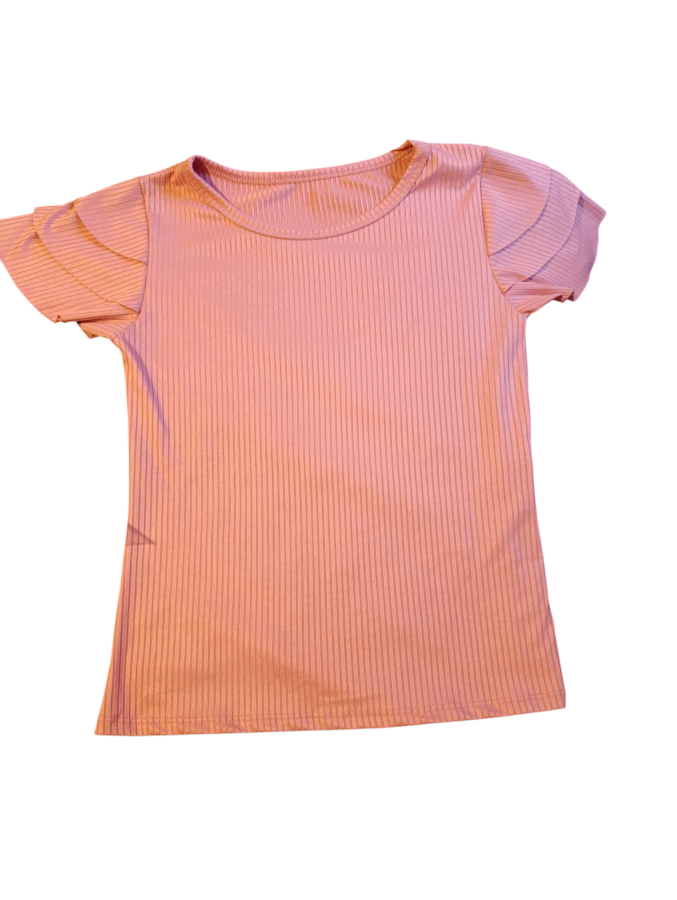 Remera de dama de morley en talle m color rosa y negro con detalle de volado en la manga