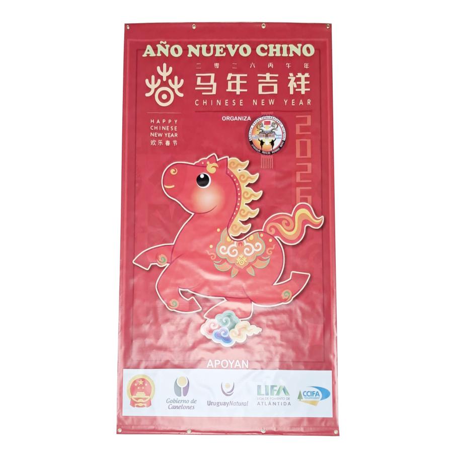 Banner con diseño personalizado. Impresión digital full color sobre lona para interior y exterior, con 8 ojales totales.