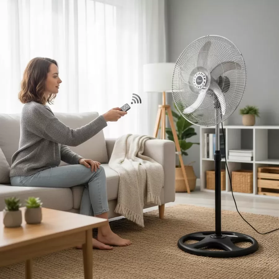 Ventilador de pie con control remoto ideal para mantener ambientes frescos de forma eficiente y silenciosa. Cuenta con 5 aspas de metal, que brindan mayor durabilidad y un flujo de aire potente y constante. Incluye control remoto, permitiendo manejar todas sus funciones a distancia de forma cómoda. Dispone de 2 velocidades, función sleep para un funcionamiento más silencioso durante la noche y timer programable, ideal para ahorro de energía. Su diseño de pie lo hace práctico para dormitorios, livings, oficinas o comercios, combinando potencia y bajo consumo energético gracias a sus 50 W. Características principales • Ventilador de pie • 5 aspas de metal • Control remoto incluido • 2 velocidades • Función sleep • Timer programable • Potencia: 50 W • Dimensiones: 127 x 53 cm