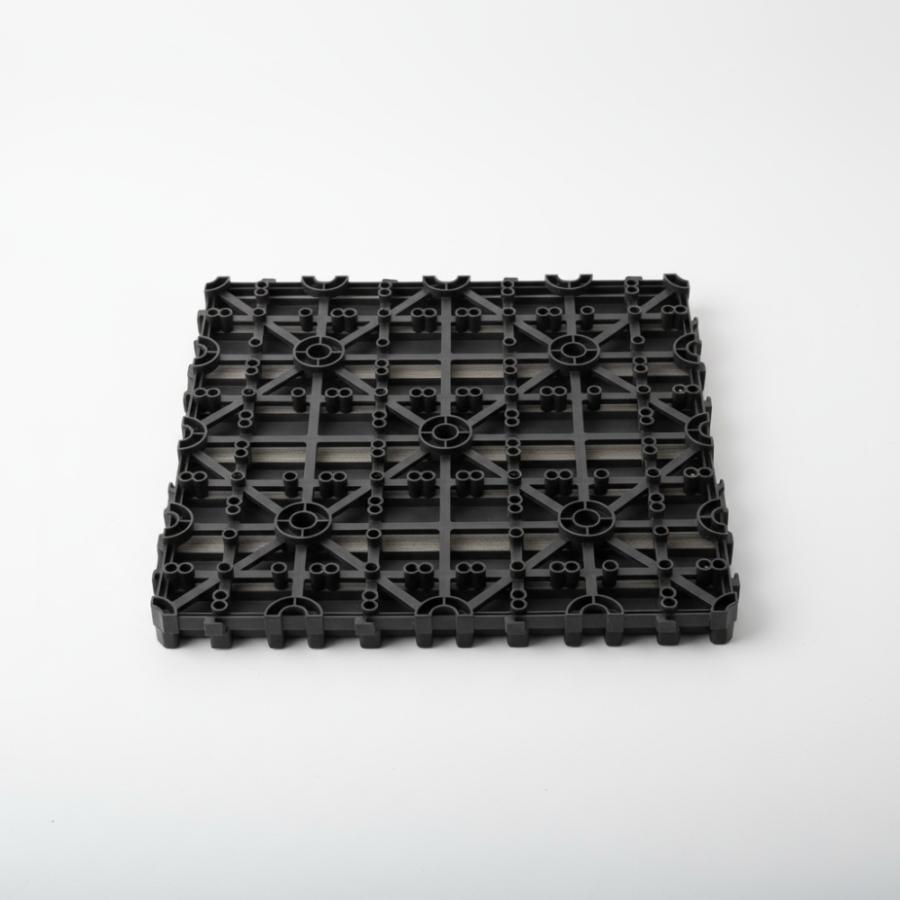 El diseño con base elevada favorece el drenaje del agua, evitando acumulaciones y mejorando la ventilación del piso. Por otro lado, el color gris oscuro aporta un estilo moderno y elegante, adaptable tanto a espacios residenciales como comerciales.