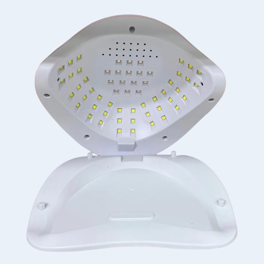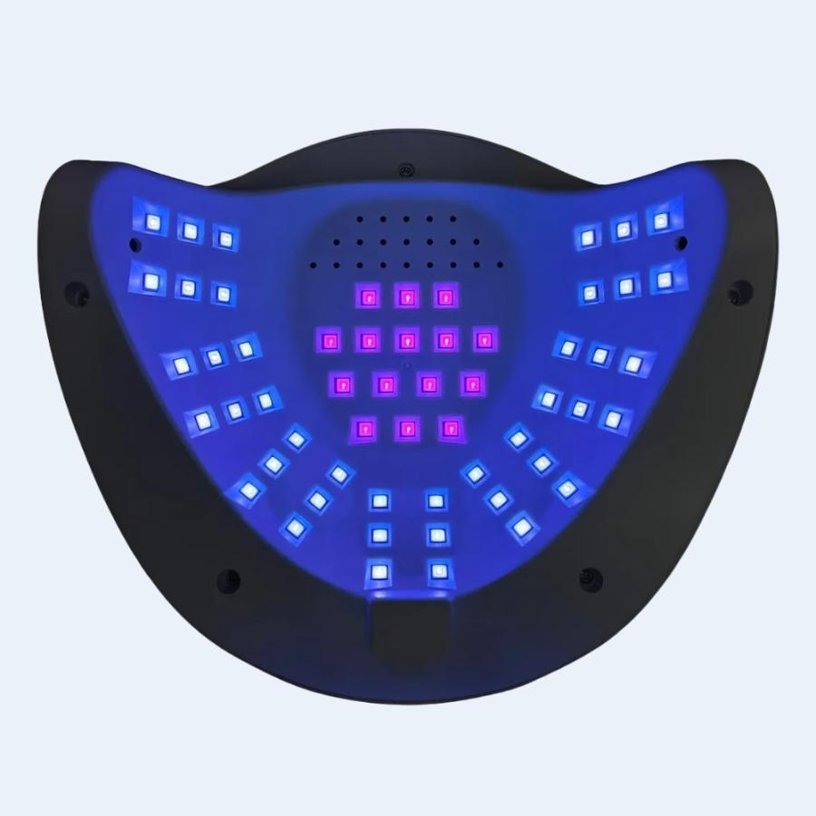 Gracias a su potencia de 268W y a sus 57 lámparas LED distribuidas estratégicamente en el interior, garantiza una cobertura completa, evitando puntos ciegos y logrando un secado uniforme en todas las uñas al mismo tiempo. Su longitud de onda dual de 365 405 nm permite un curado rápido y seguro, sin dañar la piel ni provocar oscurecimiento en las manos.