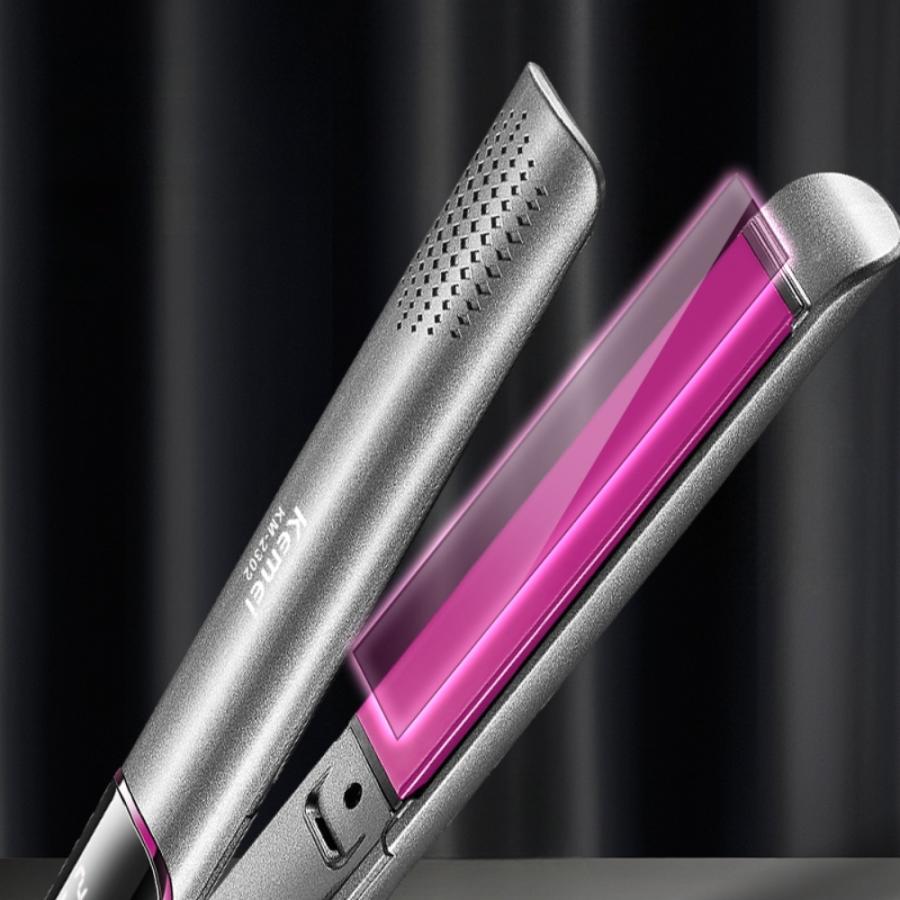 La Kemei KM-2302 cuenta con una pantalla LED digital que muestra la temperatura en tiempo real y botones laterales fáciles de usar para seleccionar el nivel de calor ideal según el tipo de cabello. Su sistema de calentamiento PTC mantiene la temperatura constante, evitando daños por sobrecalentamiento.