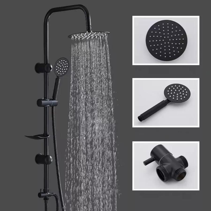 Dale un toque moderno y elegante a tu baño con esta Barra Columna para Ducha de Acero Inoxidable Color Negro. Con diseño sofisticado, esta columna incluye un lluviero redondo y un teléfono de mano, ofreciendo una experiencia completa y relajante en la ducha.