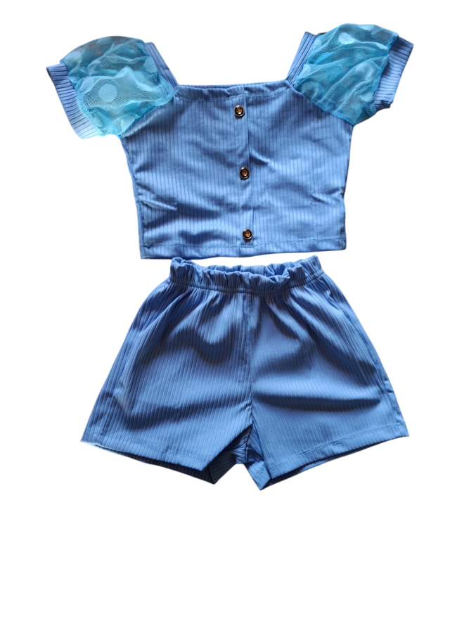 Conjunto de niña con top y shorts.