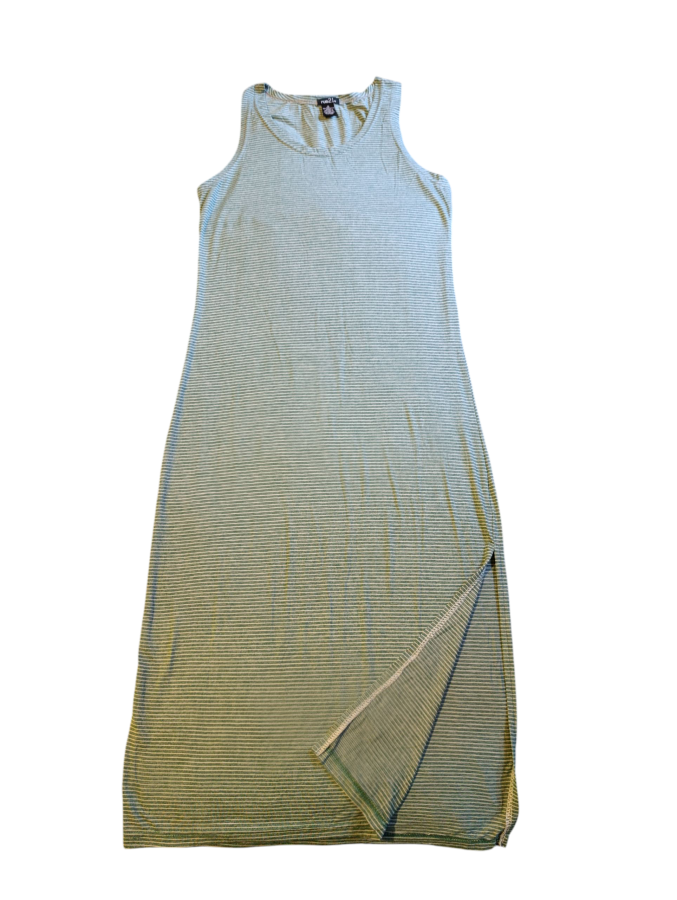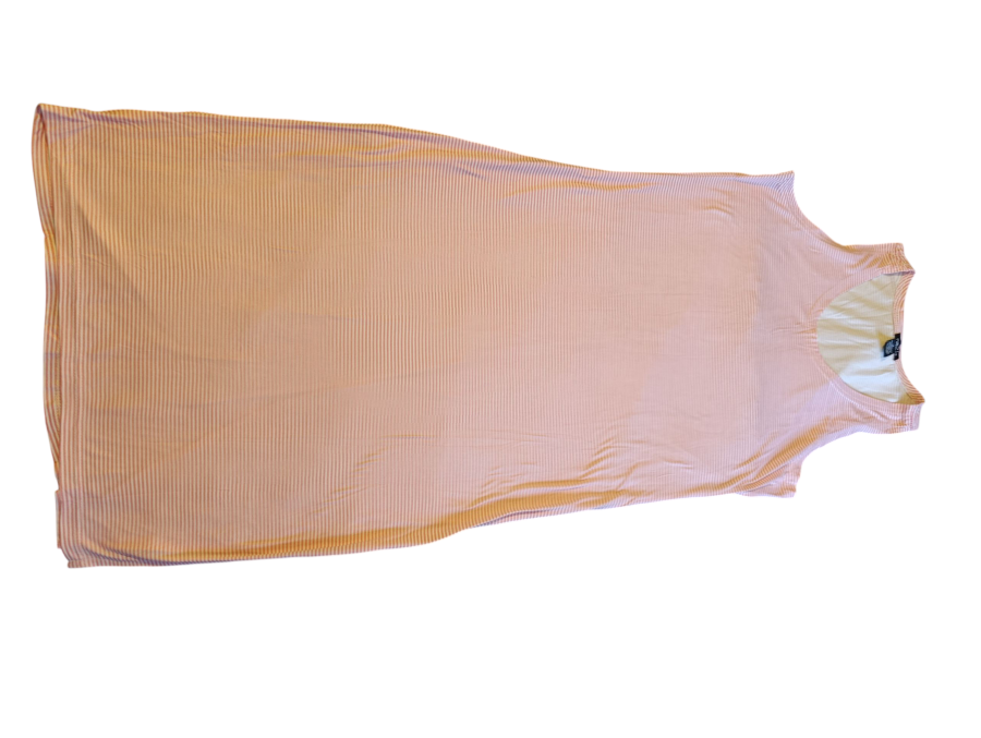 Vestido a rayas de dama en algodón largo sin mangas con Tajo de en la parte inferior