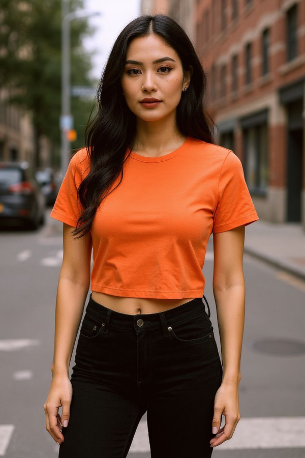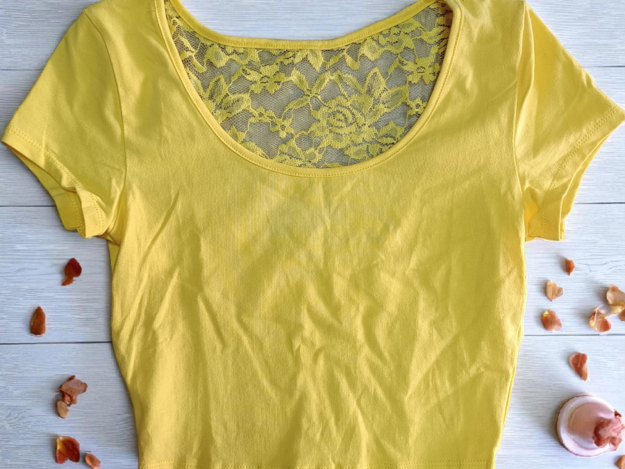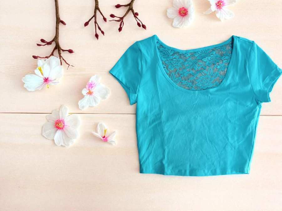 Top crop de dama en color turquesa amarillo y anaranjado en talle único.