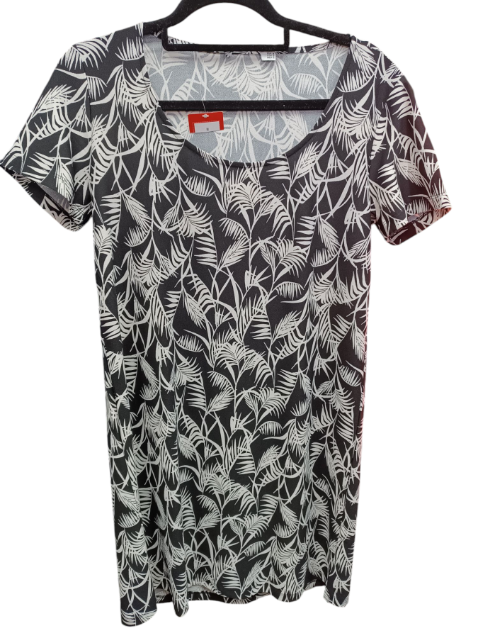 Vestido de dama elastizado negro con estampado en blanco
