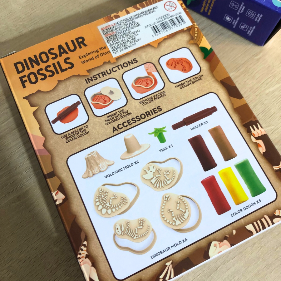 -6 accesorios de fósiles de dinosaurio, volcán y palmera