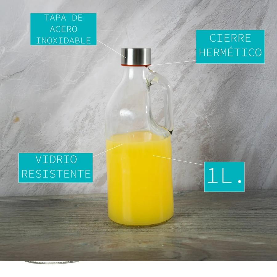 Descubre la versatilidad de nuestra Botella de Vidrio Hermética de 1 litro con tapón metálico, ideal para mantener tus bebidas frescas y seguras. Con unas medidas de 26 cm de altura y 9 cm de ancho, su diseño elegante se adapta perfectamente a cualquier situación, ya sea en casa, en la oficina o durante tus actividades al aire libre. Fabricada en vidrio de alta calidad, esta botella es 100% libre de BPA, garantizando que tus líquidos se mantengan libres de sustancias dañinas. Su tipo de boquilla a rosca permite un cierre hermético, previniendo derrames y manteniendo la frescura de su contenido. Además, este producto cuenta con un IVA del 21% y no está sujeto a impuesto interno, lo que la convierte en una opción aún más atractiva. Perfecta para quienes buscan una opción eco-amigable y duradera.