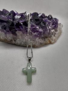 Dije Cruz Cuarzo Verde con Cadena Gruesa de Acero