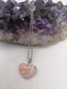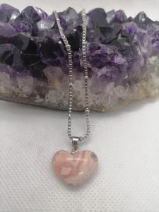 Dije Corazón Rodocrosita con Cadena Fina de Acero