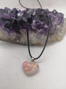 Dije Corazón Rodocrosita con Cordón Negro