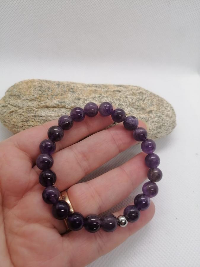 Pulsera en amatista en piedras naturales en 8mm elástica.