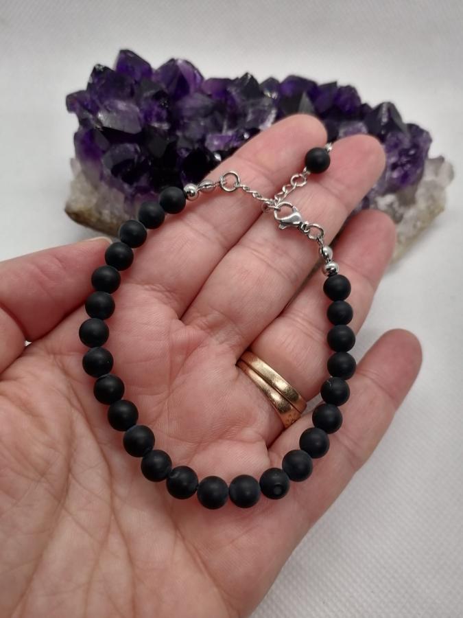 Pulsera en piedra natural ónix mate en bolita de 6 mm y cierre de acero.