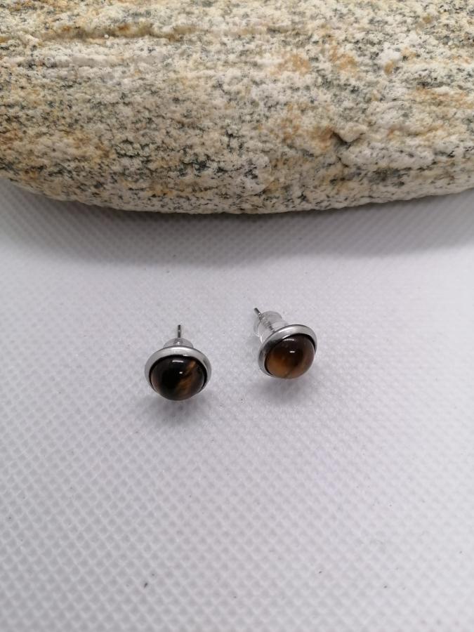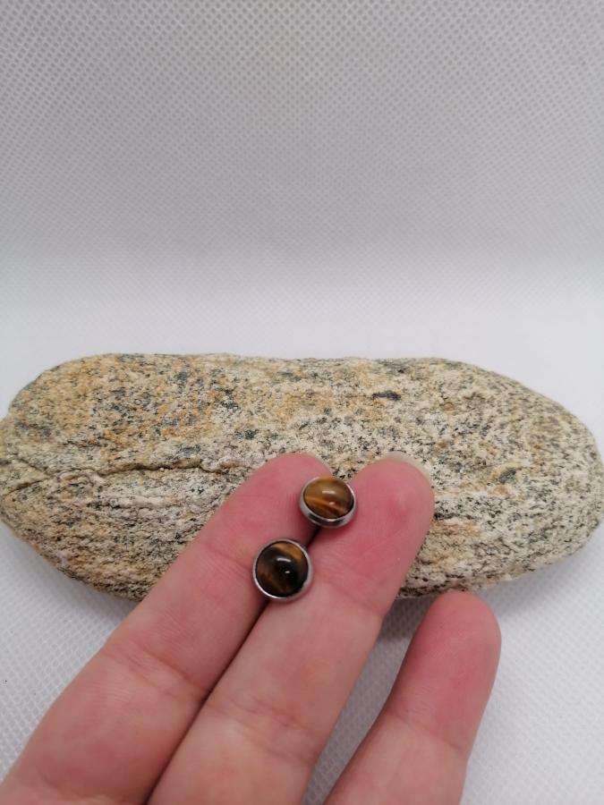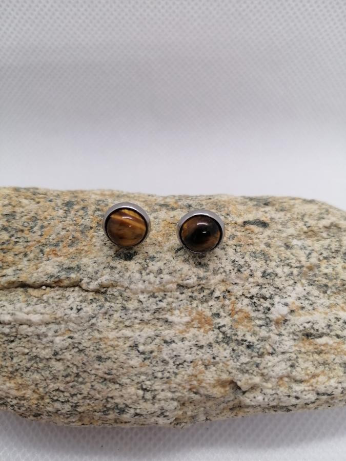 Par de caravanas en acero en piedra natural ojo de tigre.