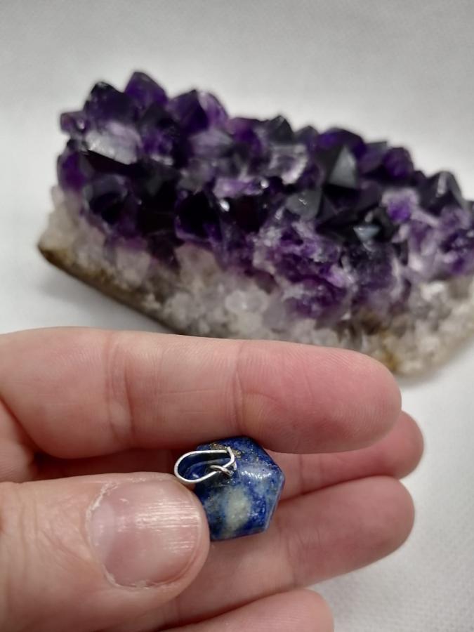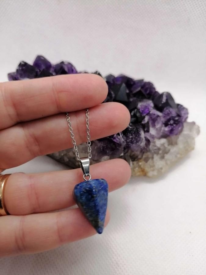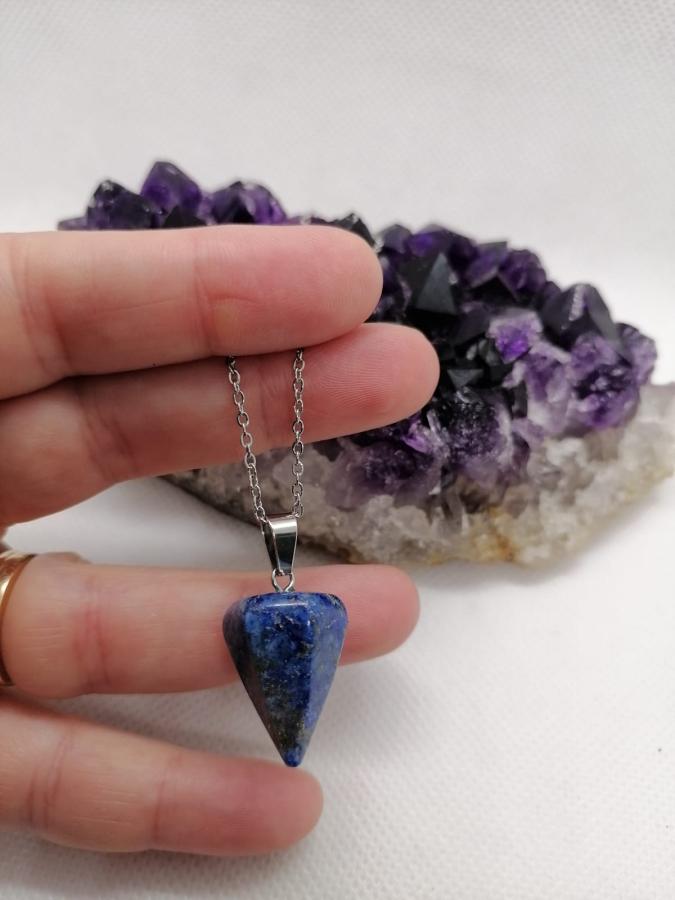 Dije péndulo en piedra natural lapislázuli con cadena de acero.