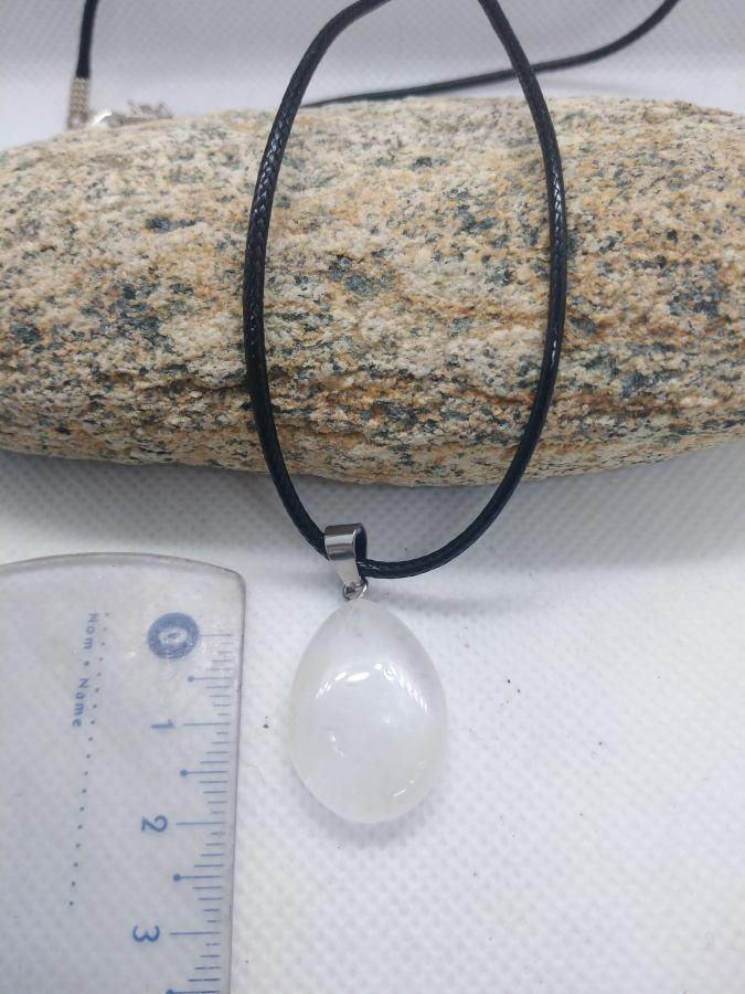 Dije gota en cuarzo blanco en piedra natural con cordón negro.