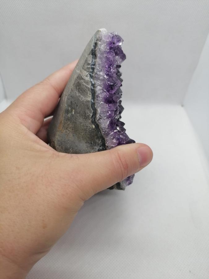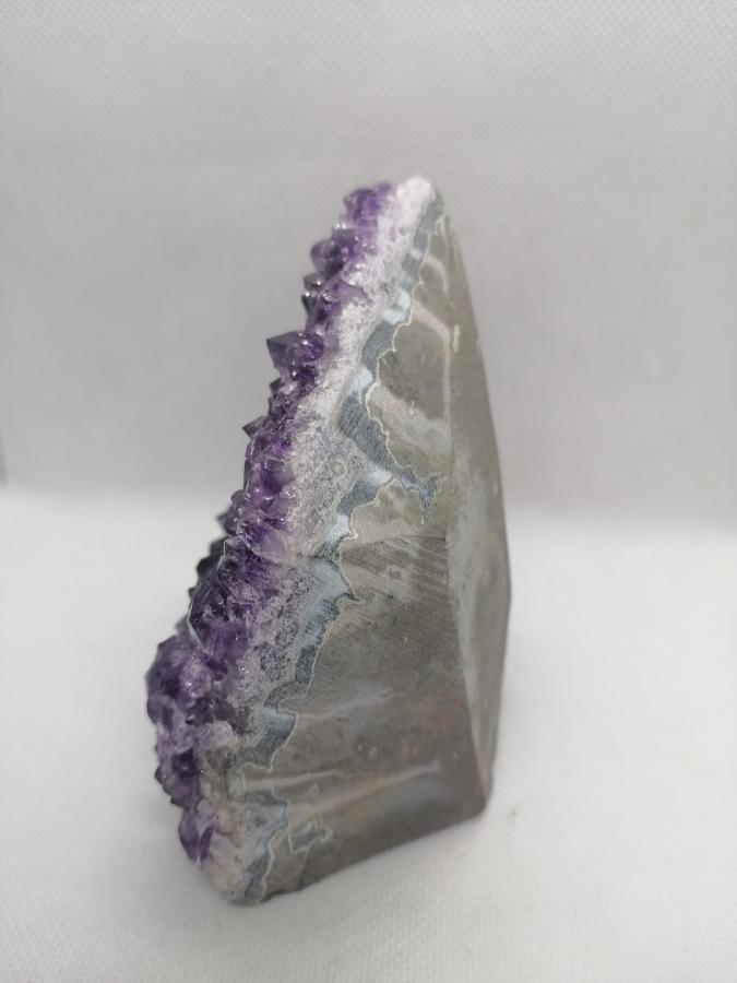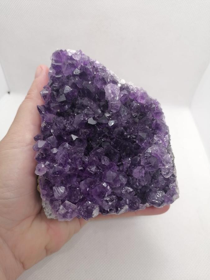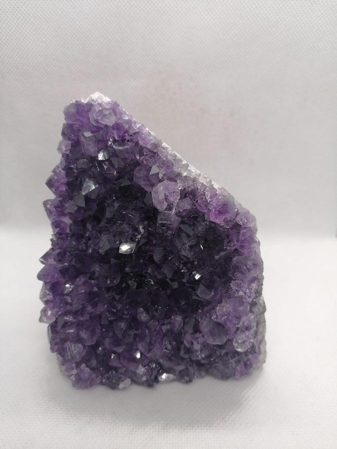 Limpia el aura y transmuta le energía negativa, además de estimular los chakras de la garganta y coronilla. Inspira tranquilidad y relaja las emociones. Ayuda en situaciones de pérdida de un familiar. Los efectos relajantes de la amatista ayudan en la eliminación del estrés emocional y en los estados de menopausia.