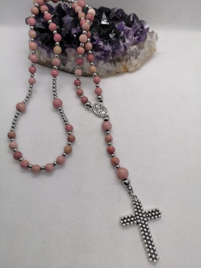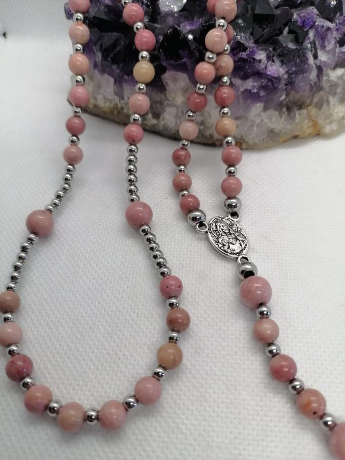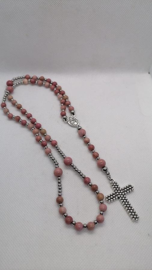 Collar rosario en piedra natural rodonita con bolita 6mm y 8mm