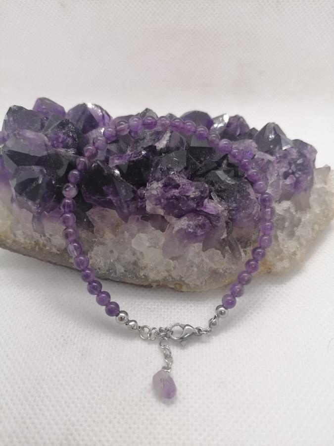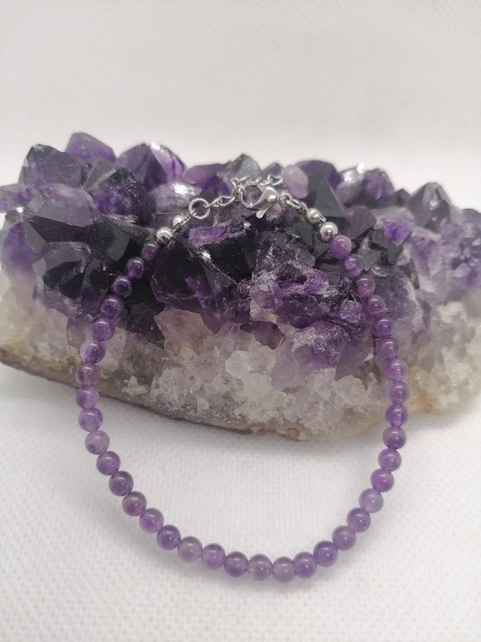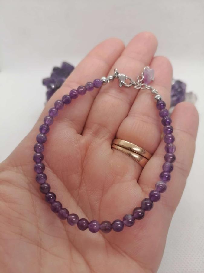 Pulsera en amatista en piedras naturales en bolita de 4mm con cierre de acero.