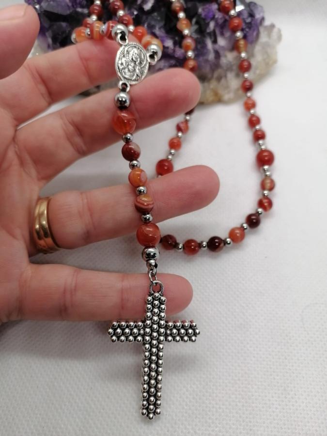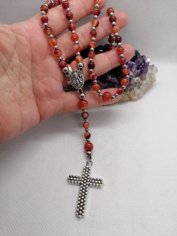 Rosario en piedra natural cornalina en bolita de 6 y 8mm.