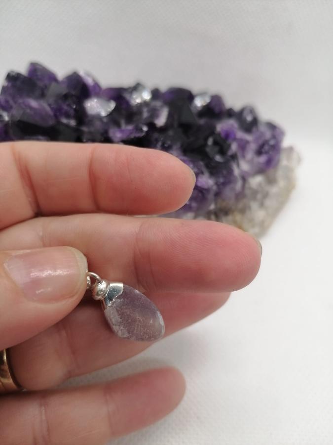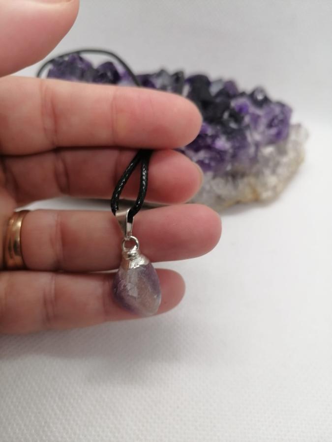 Dije con electro en piedra natural fluorita con cordón negro.