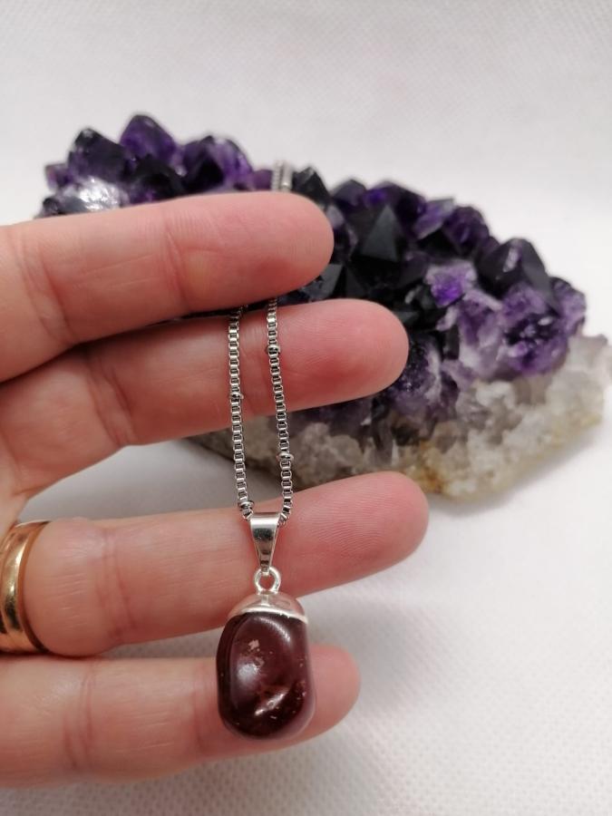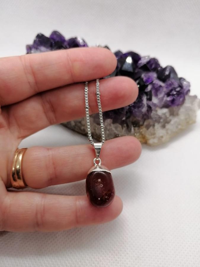 Dije con electro en piedra natural cornalina con cadena gruesa de acero.