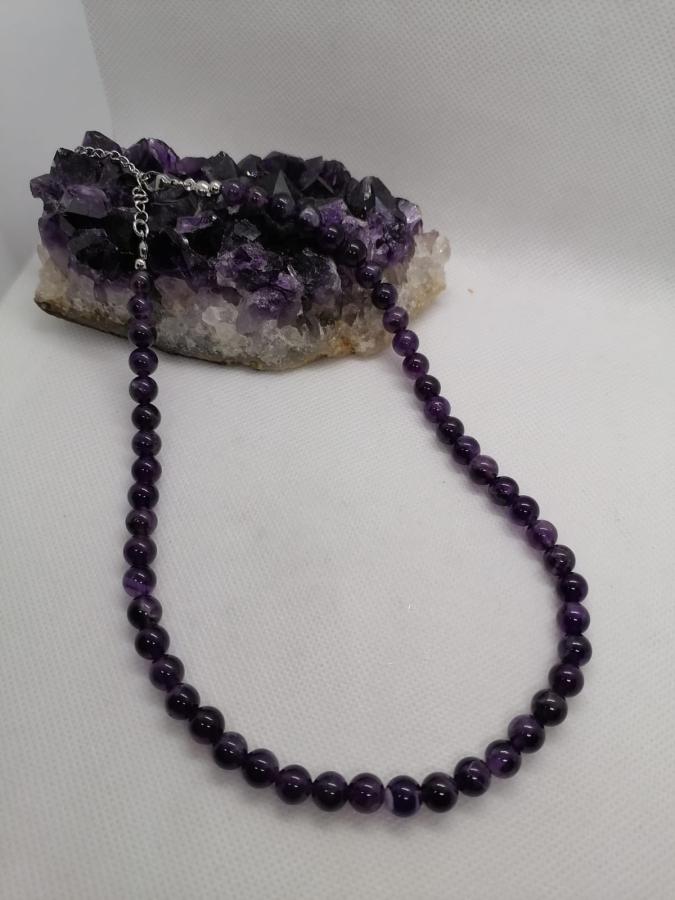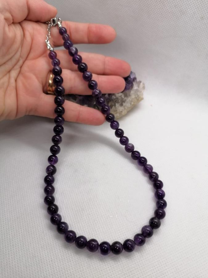 Gargantilla en piedra natural amatista en bolita de 8mm.