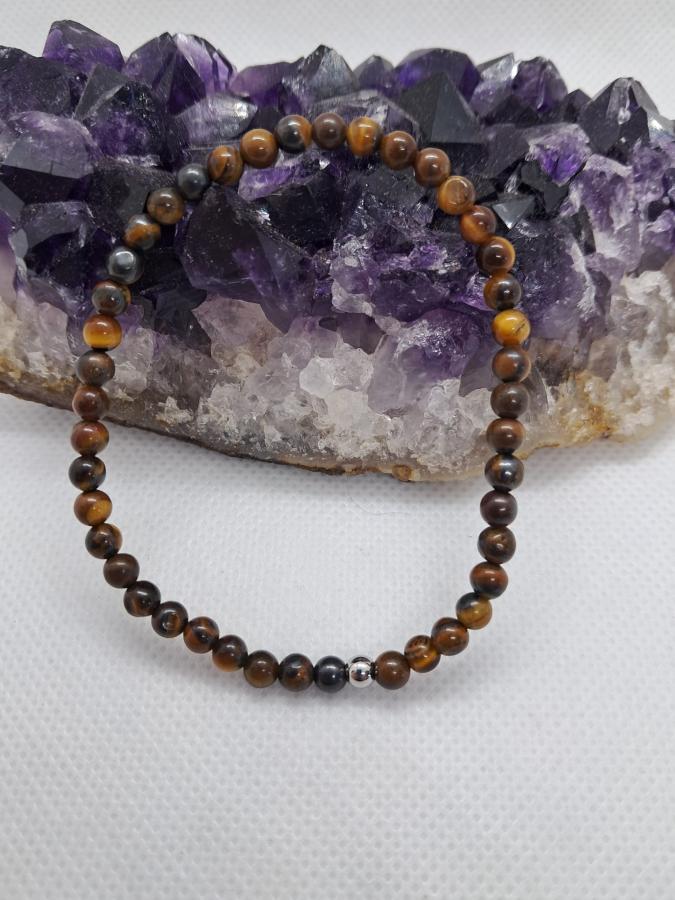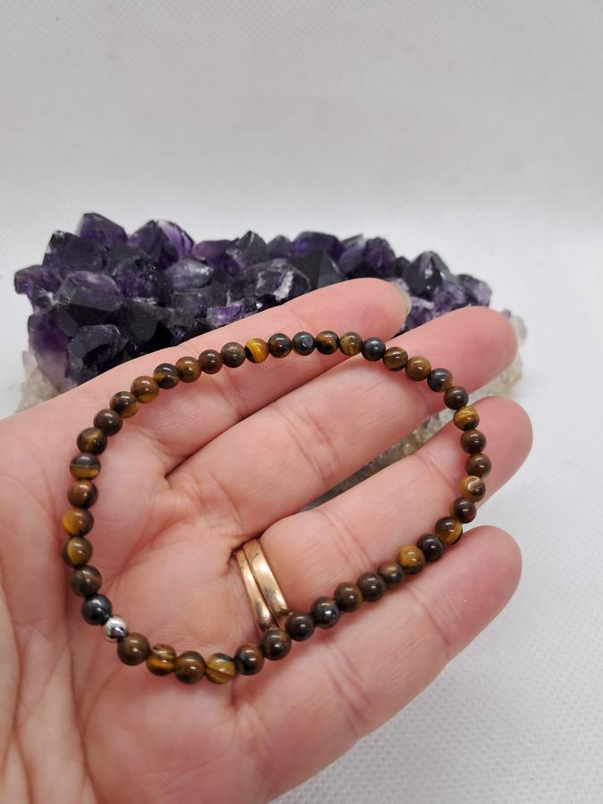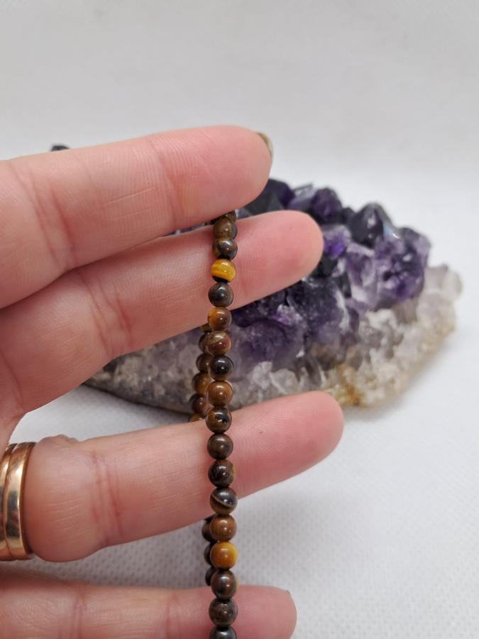 Pulsera en piedras naturales en ojo de tigre en bolita de 4 mm elástica.