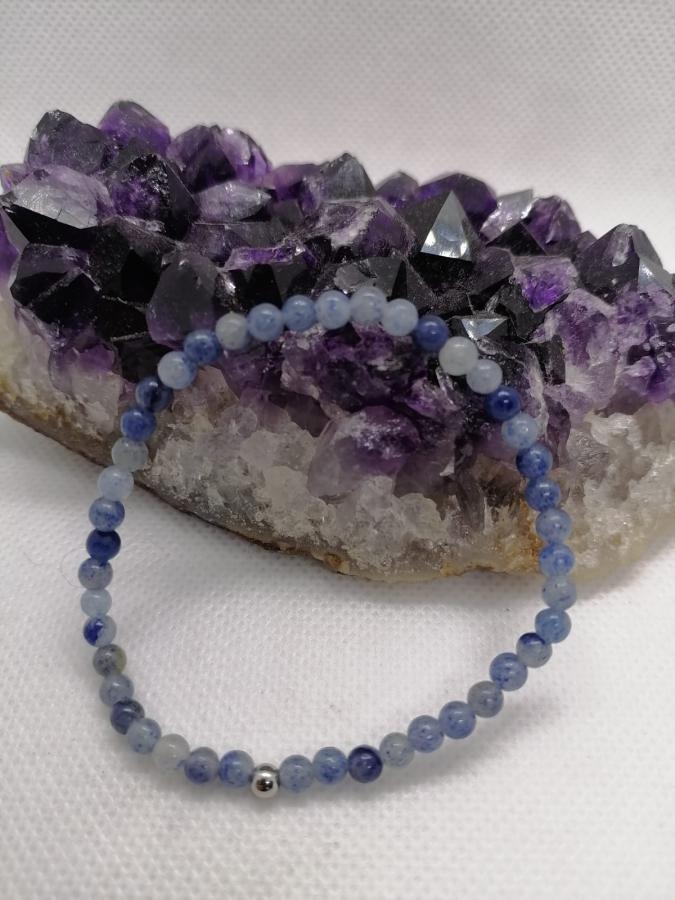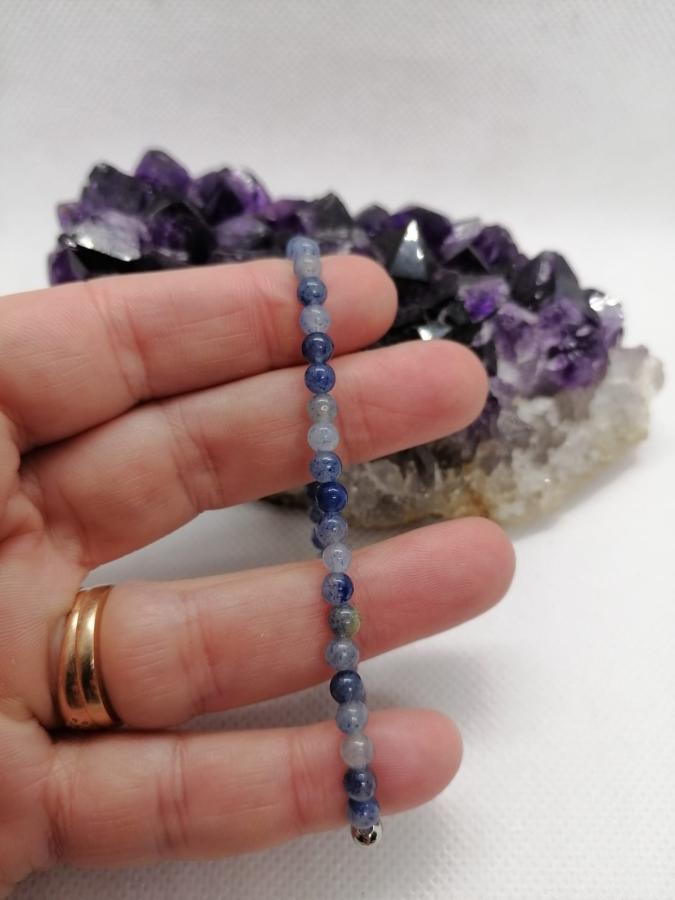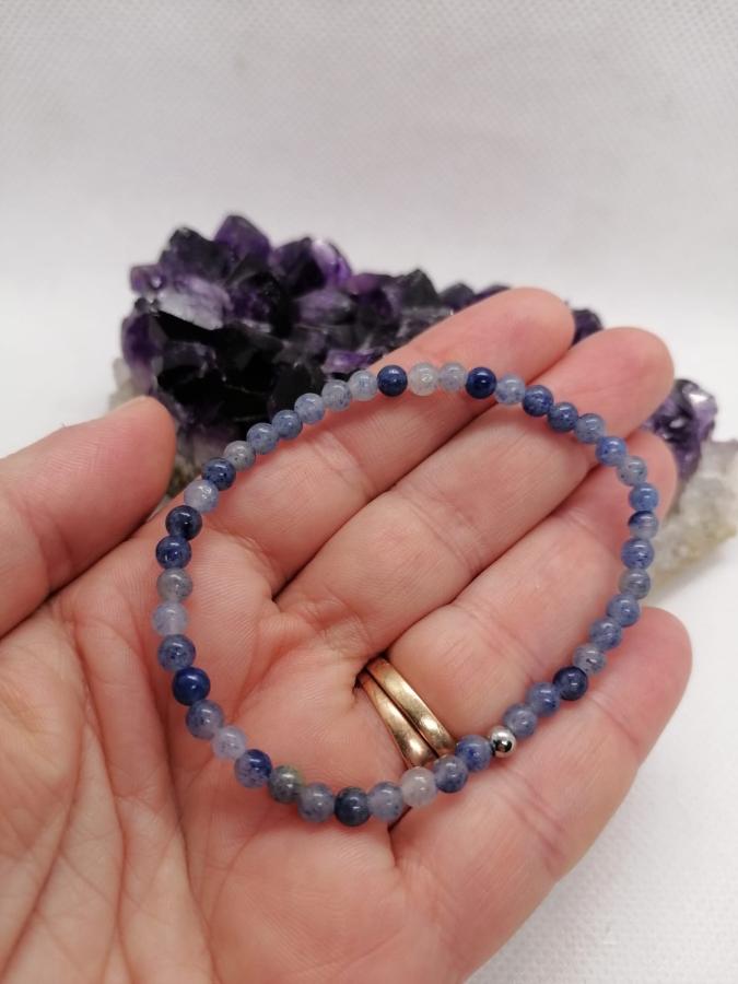 Pulsera cuarzo azul en piedra natural en bolita de 4 mm elástica.
